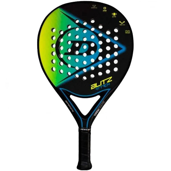 La pala Dunlop Blitz Attack esta fabrica con grafito premium y utiliza la tecnología Open Frame en la base del marco para mejorar la manejabilidad y la rigidez, lo que proporciona un control adicional. El núcleo Pro EVA asegura una mezcla óptima de potencia y control. Además, cuenta con un acabado Extra Grip que aumenta el efecto de giro para golpes más penetrantes.
